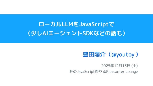 2025年12月13日 (土) 冬のJavaScript祭り @Pleasanter Lounge 豊田陽介( ) @youtoy ローカルLLMをJavaScriptで (少しAIエージェントSDKなどの話も)
