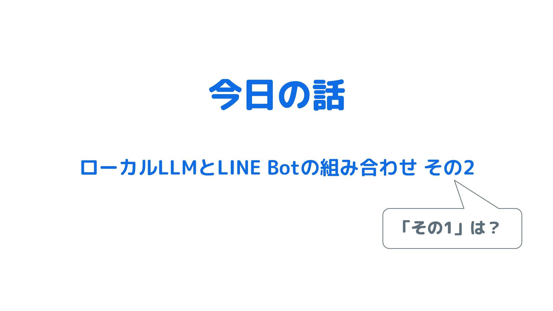 今日の話 ローカルLLMとLINE Botの組み合わせ その2 「その1」は?