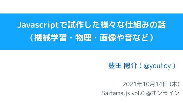 Javascriptで試作した様々な仕組みの話 (機械学習・物理・画像や音など) 2021年10月14日 (木) Saitama.js vol.0 @オンライン 豊田 陽介 (