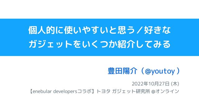 個人的に使いやすいと思う/好きな ガジェットをいくつか紹介してみる 2022年10月27日 (木) 【enebular developersコラボ】トヨタ ガジェット研究所 @オンライン 豊田陽介( )
