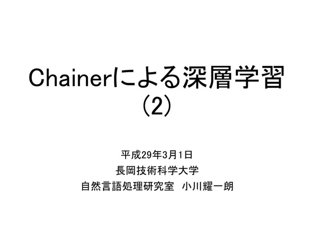 Chainerによる深層学習 (2) 平成29年3月1日 長岡技術科学大学 自然言語処理研究室 小川耀一朗
