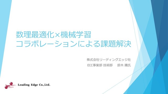数理最適化×機械学習 コラボレーションによる課題解決 株式会社リーディングエッジ社 ECC事業部 技術部 鈴木 庸氏