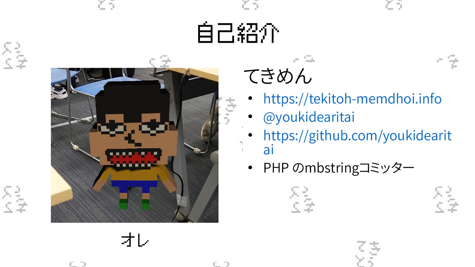 自己紹介 てきめん • https://tekitoh-memdhoi.info • @youkidearitai • https://github.com/youkidearit ai •