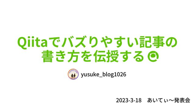 2023-3-18 あいてぃ〜発表会 Qiitaでバズりやすい記事の 書き方を伝授する yusuke_blog1026