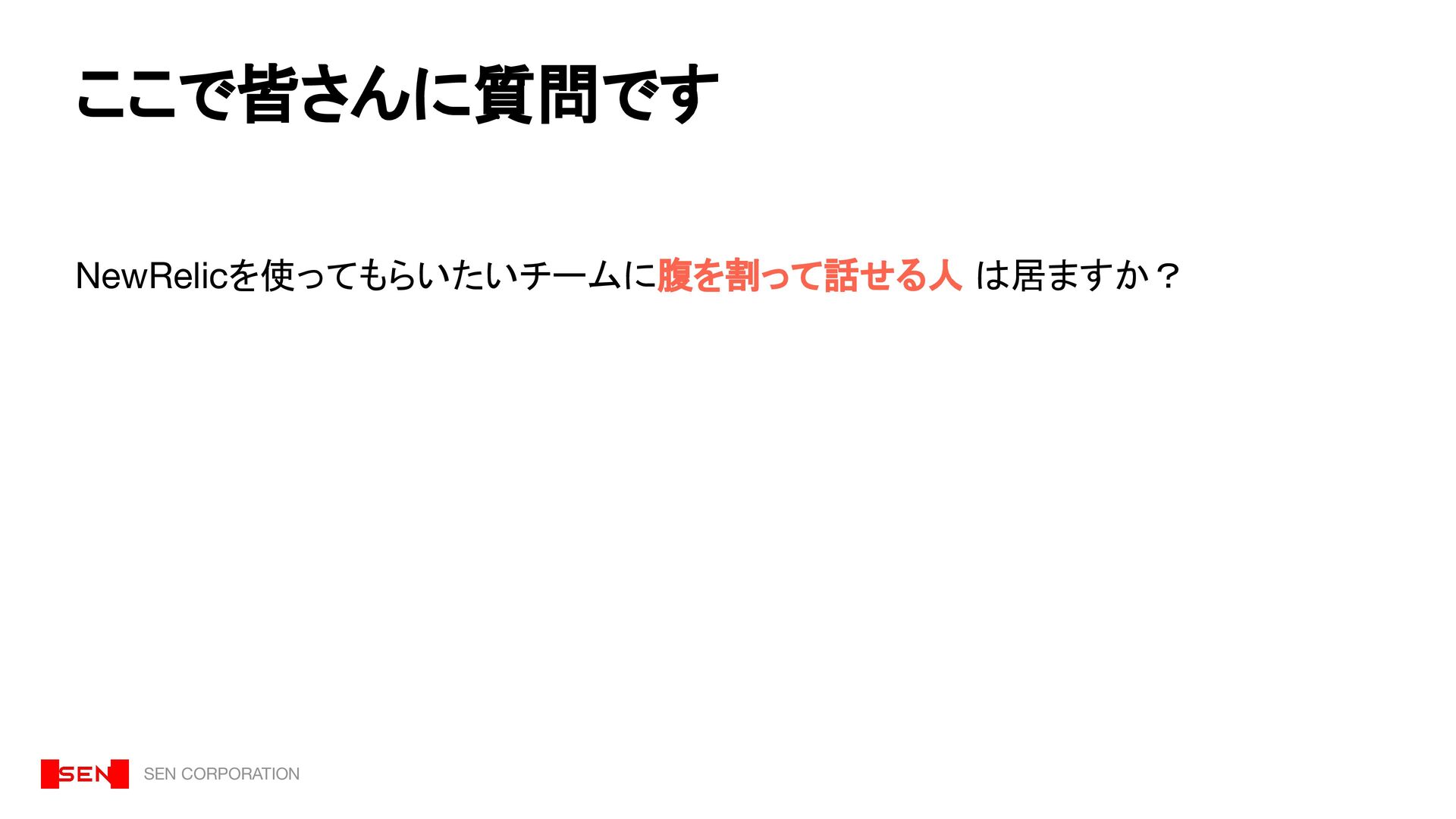 SEN CORPORATION ここで皆さんに質問です NewRelicを使ってもらいたいチームに腹を割って話せる人 は居ますか?