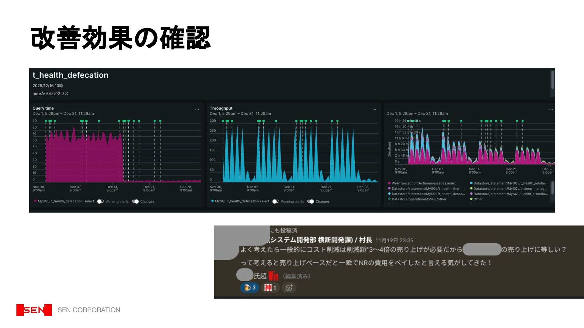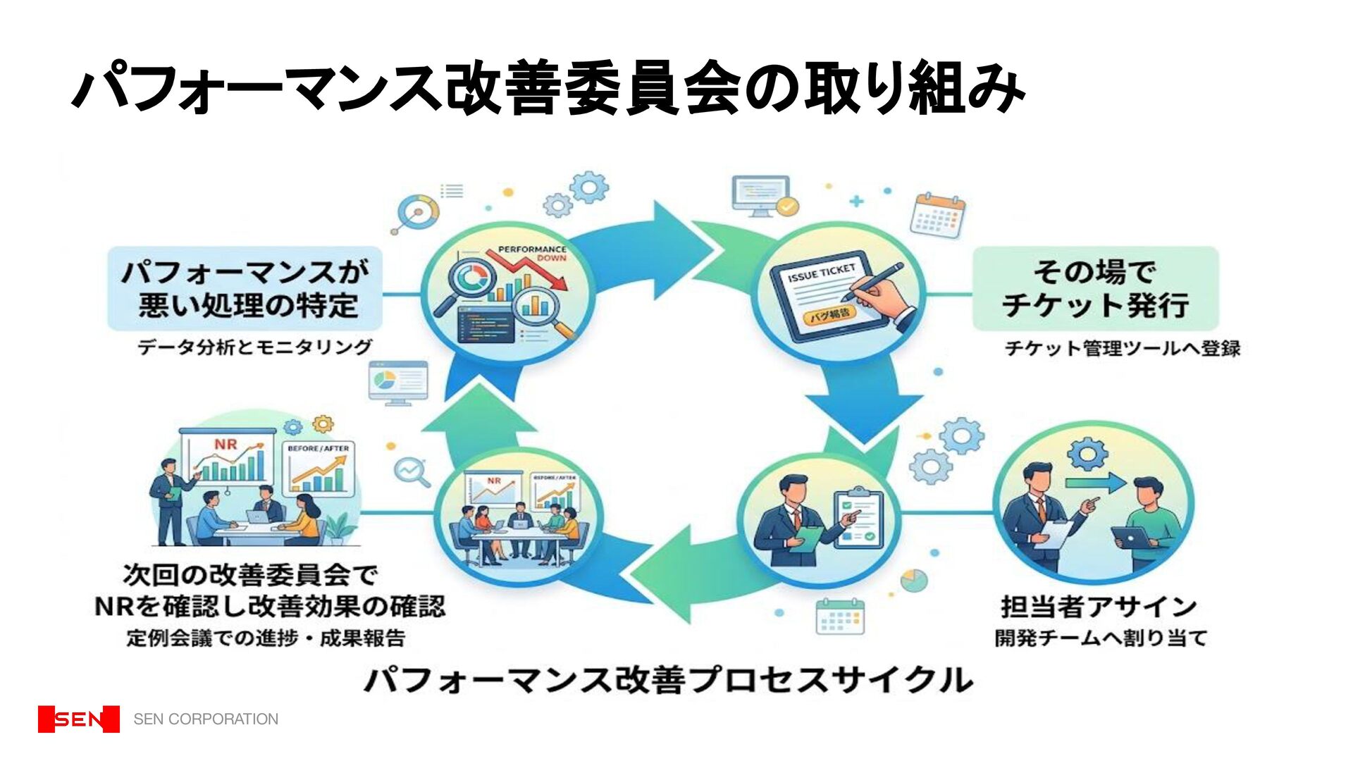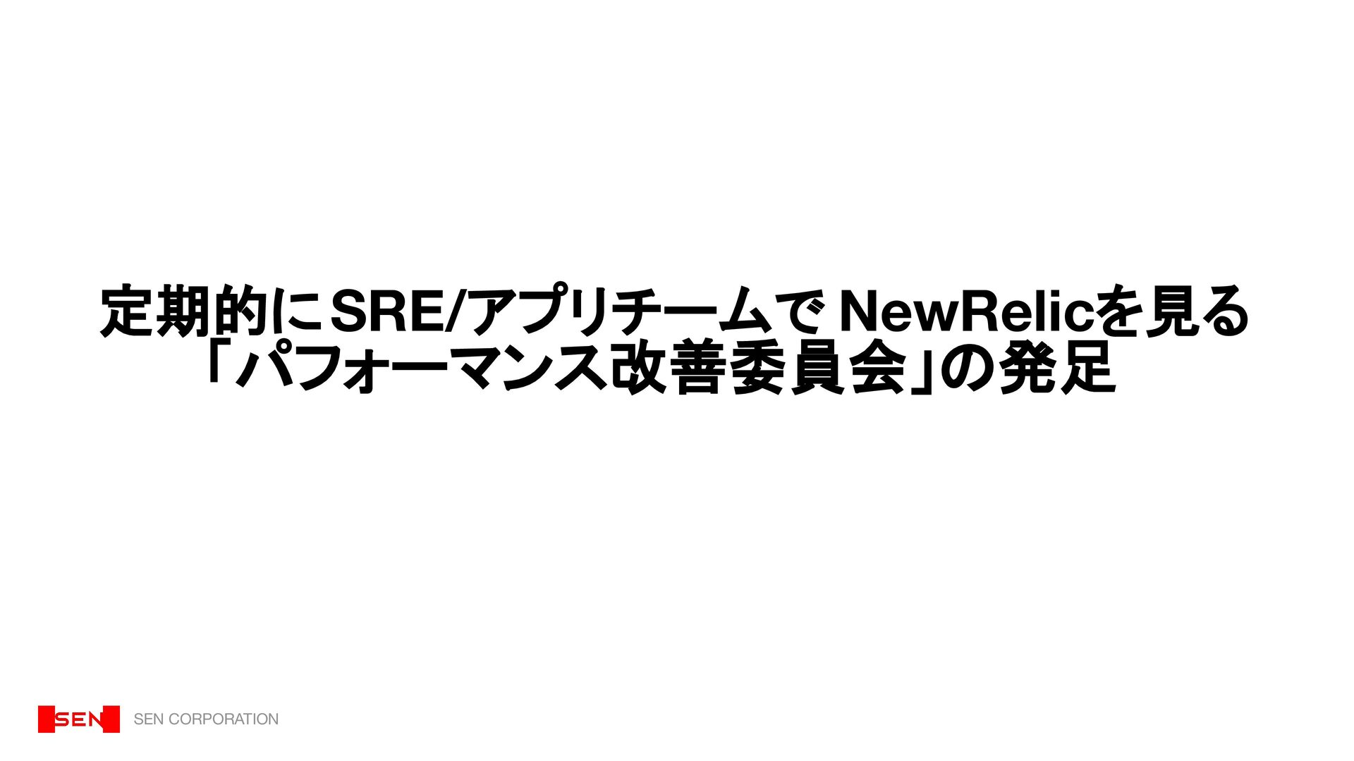 SEN CORPORATION 定期的にSRE/アプリチームで NewRelicを見る 「パフォーマンス改善委員会」の発足