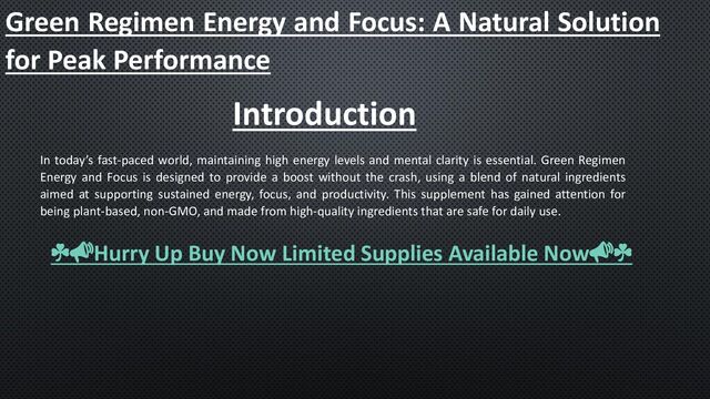 In today’s fast-paced world, maintaining high energy levels and mental clarity is essential. Green Regimen Energy and Focus is designed to provide a boost without the crash, using a blend of natural ingredients aimed at supporting sustained energy, focus, and productivity. This supplement has gained attention for being plant-based, non-GMO, and made from high-quality ingredients that are safe for daily use.