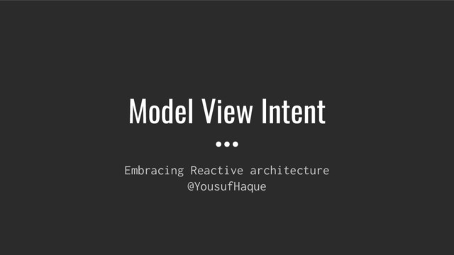 https://www.youtube.com/watch?v=0IKHxjkgop4 2. Borrowing the Best of the Web to Make Native Better by Christina Lee a. https://www.youtube.com/watch?v=GOVMkQp3LZ4 3. Unidirectional data flow architectures by Andre Staltz a. https://www.youtube.com/watch?v=1c6XiQsnh_U b. https://staltz.com/unidirectional-user-interface-architectures.html 4. Reactive Apps with Model View Intent by Hannes Dorfmann a. http://hannesdorfmann.com/android/mosby3-mvi-1 5. My Take on Model View Intent by Zak Taccardi a. https://hackernoon.com/model-view-intent-mvi-part-1-state-renderer-187e270db15c 6. Login MVI by Yousuf Haque a. https://github.com/yousuf-haque/LoginMvi