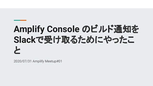 Amplify Console のビルド通知を Slackで受け取るためにやったこ と 2020/07/31 Amplify Meetup#01