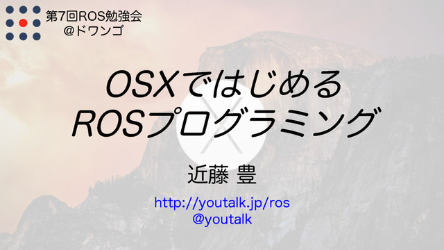 10/4に開催された第7回ROS勉強会 https://ros-users.doorkeeper.jp/events/30434 の発表資料です。ROS人口を拡大するため、今回はOSXでのROSの動かし方を紹介しました。