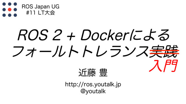 ROS Japan UG #11 LT大会 https://rosjp.connpass.com/event/58755/ の発表資料です。Dockerのフォールトトレランス機能をROS 2に導入して実験しました。
