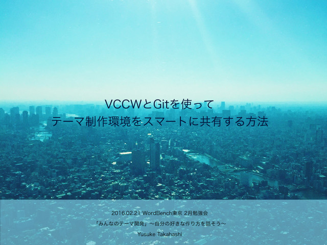 7$$8ͱ(JUΛͬͯ ςʔϚ੍࡞ڥΛεϚʔτʹڞ༗͢Δํ๏ 8PSE#FODI౦ژ݄ษڧձ ʮΈΜͳͷςʔϚ։ൃʯʙࣗͷ͖ͳ࡞ΓํΛͦ͏ʙ :VTVLF5BLBIBTIJ