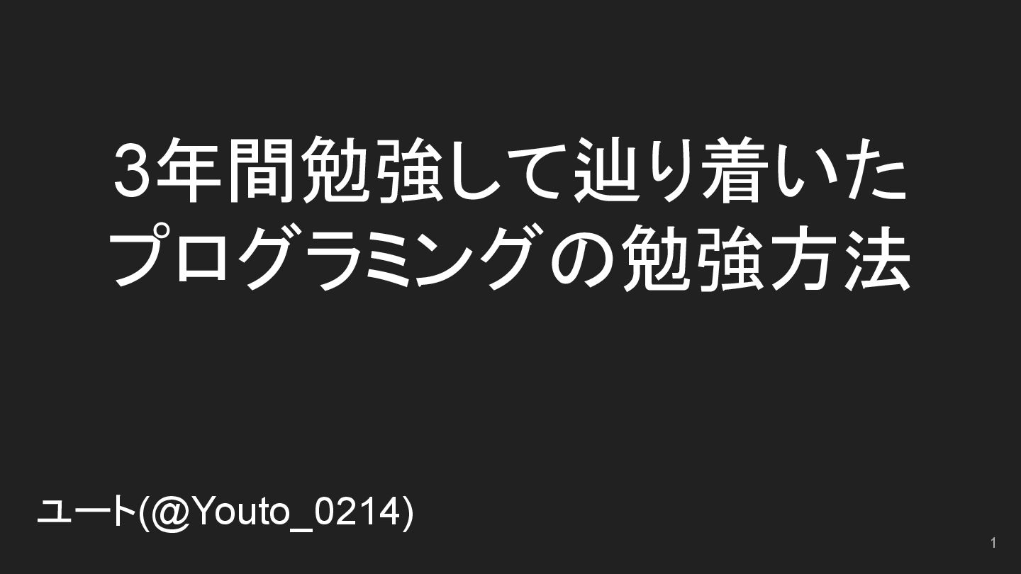 3年間勉強して辿り着いた プログラミングの勉強方法 ユート(@Youto_0214) 1