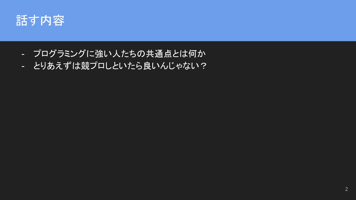 話す内容 - プログラミングに強い人たちの共通点とは何か - とりあえずは競プロしといたら良いんじゃない? 2