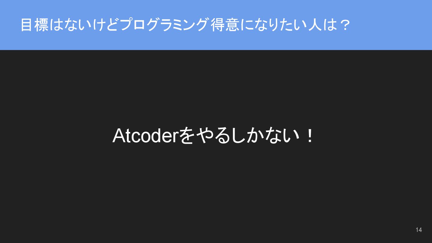 目標はないけどプログラミング得意になりたい人は? Atcoderをやるしかない! 14