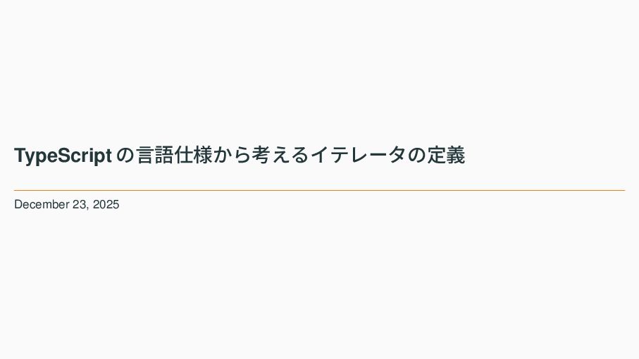TypeScript の言語仕様から考えるイテレータの定義 December 23, 2025