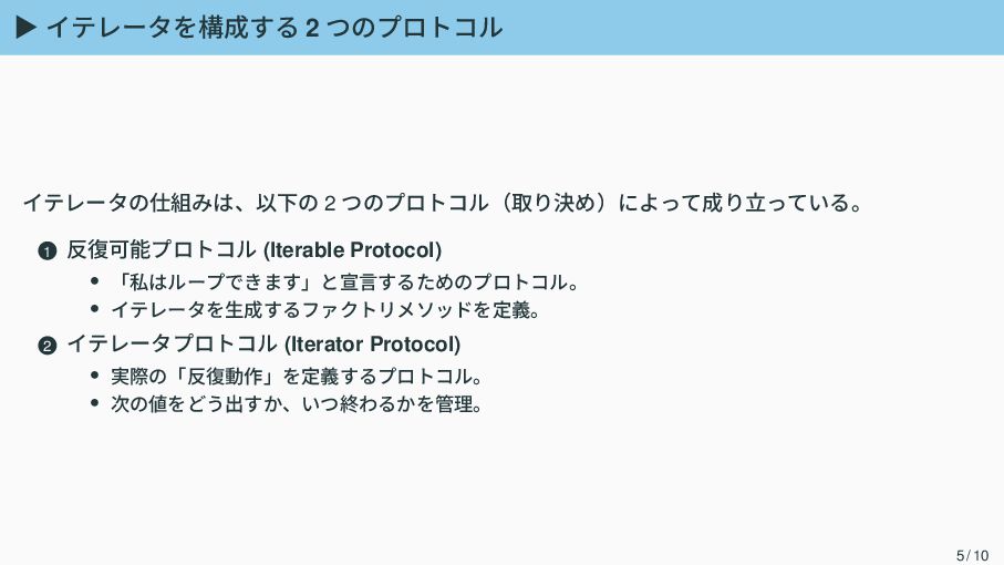 イテレータプロトコル 5 まとめ 2 / 10