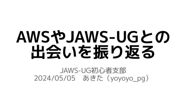 JAWS-UG初心者支部 2024/05/05 あきた(yoyoyo_pg) AWSやJAWS-UGとの 出会いを振り返る