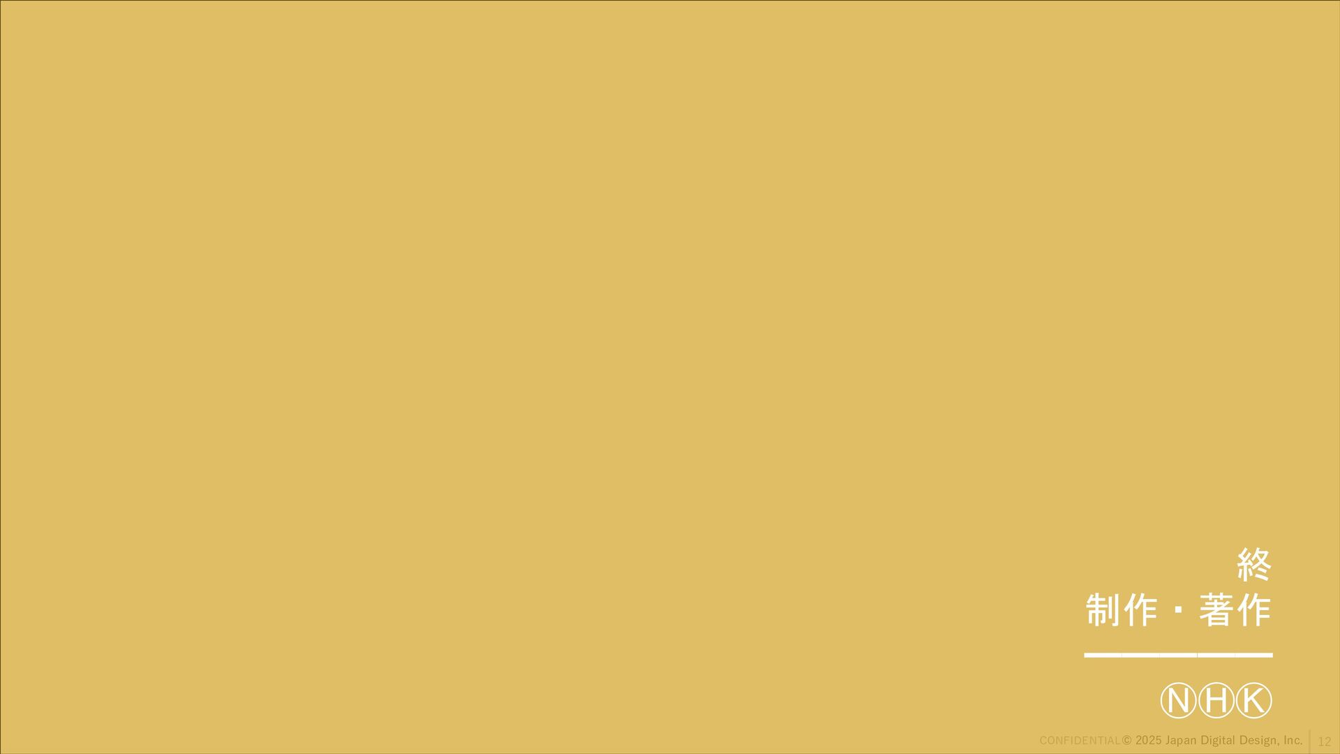 12 CONFIDENTIAL© 2025 Japan Digital Design, Inc. 終 制作・著作 ━━━━━