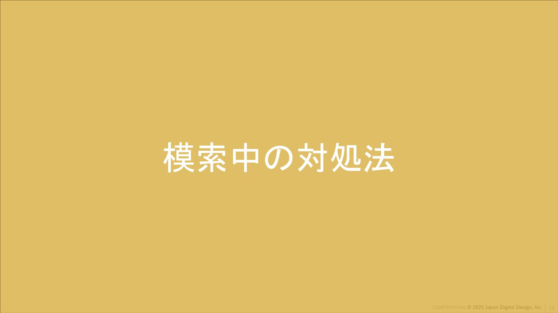 14 CONFIDENTIAL© 2025 Japan Digital Design, Inc. 模索中の対処法