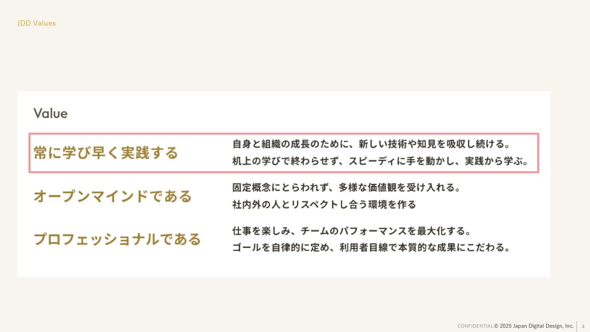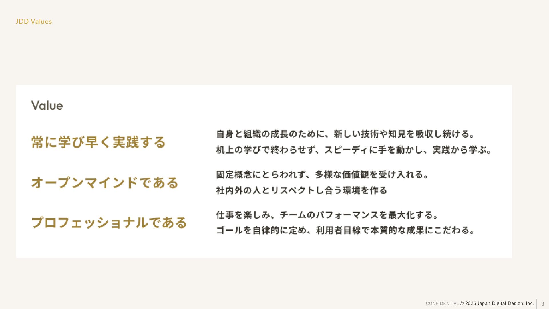 3 CONFIDENTIAL© 2025 Japan Digital Design, Inc. JDD Values
