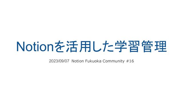 Notionを活用した学習管理 2023/09/07 Notion Fukuoka Community #16