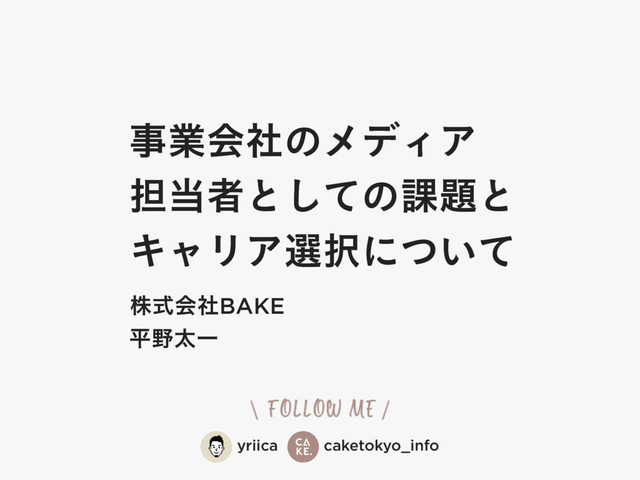 ࣄۀձࣾͷϝσΟΞ ୲ऀͱͯ͠ͷ՝ͱ ΩϟϦΞબʹ͍ͭͯ ฏଠҰ גࣜձࣾBAKE caketokyo_info yriica