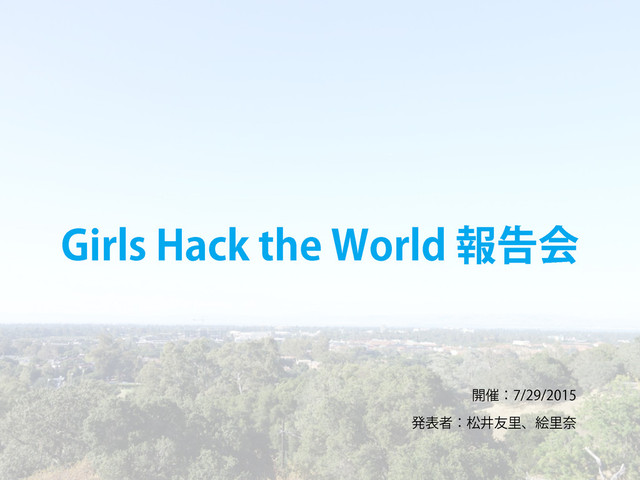 章立ては 1. Girls Hack the World とは 2. 各国スタートアップ事情 3. 国際展開について聞いてみた 4. イベント・スピーカーについて 5. 参考資料