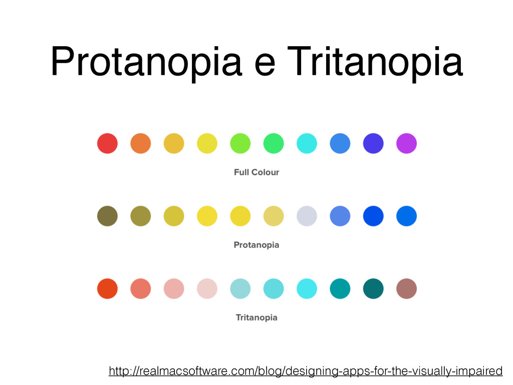 Deuteranopia http://realmacsoftware.com/blog/designing-apps-for-the-visually-impaired 1% dei maschi
