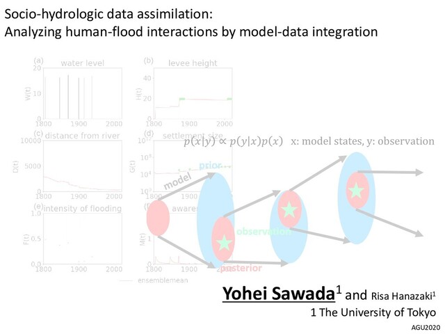 water level) Flood risk model: f + 1 = , , x: model variables (e.g., levee height, settlement size) Observation Simulated observation Operator True world OSSE is the idealized numerical experiment to check if the proposed algorithm properly works. Model parameter: (e.g., social memory decay rate) External forcing (High water level) Flood risk model: f + 1 = , , x: model variables (e.g., levee height, settlement size) Simulated observation Operator Model parameter: (e.g., social memory decay rate)
