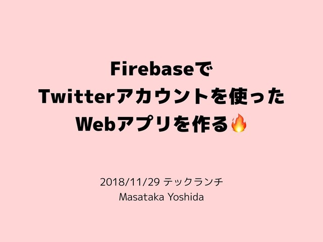 Firebaseで Twitterアカウントを使った Webアプリを作る 2018/11/29 テックランチ Masataka Yoshida