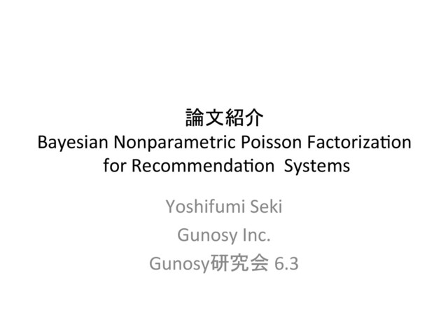 論文紹介 Bayesian Nonparametric Poisson Factoriza3on for Recommenda3on