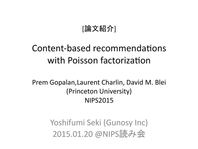 – 5 million observa1on • arXiv – 120,297 users, 825,707 ar1cles – 43 million observa1on – 10 years(2003-‐2012) – [test data]64,978 users, 636,978 ar1cles, 7.6 million click(2012) • treat user click as binary data • remove stop words • top 10,000(14,000 for arXiv) dis1nct words as the vocabulary (use g-‐idf)