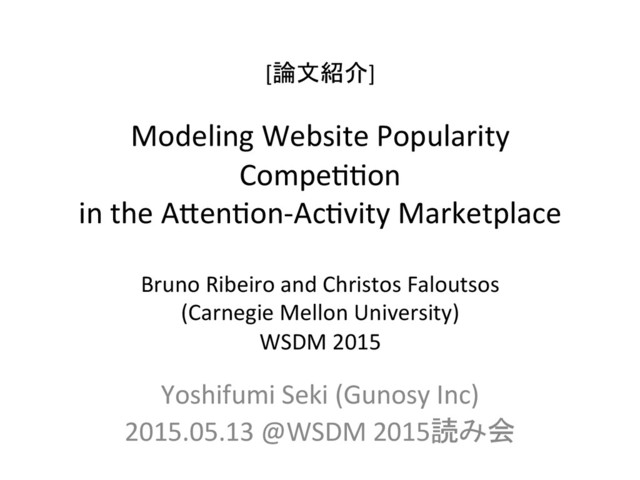 in the A;en8on-‐Ac8vity Marketplace Bruno Ribeiro and Christos Faloutsos (Carnegie Mellon University) WSDM 2015 Yoshifumi Seki (Gunosy Inc) 2015.05.13 @WSDM 2015読み会