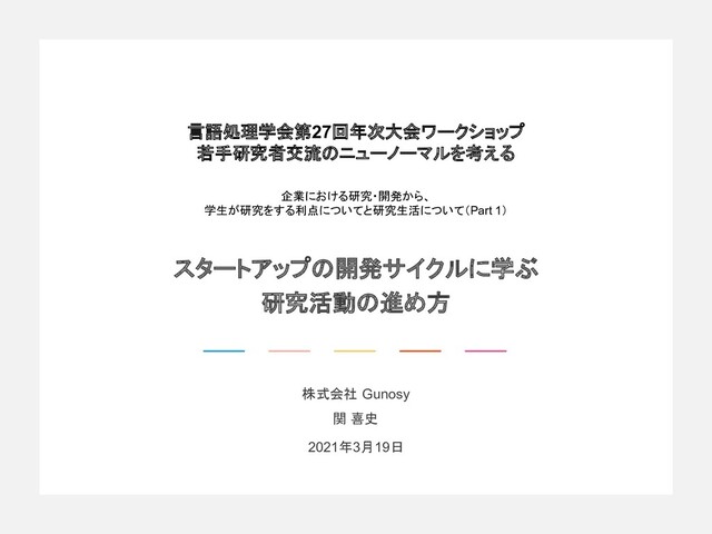 限られたリソースで業績をあげるために、研究のやり方を変える – 社内で出た技術的成果を論文化する • 執筆と論文化のための実験に注力 – 学生インターンの採用と育成 • どうしても事業目線に引っ張られてしまったり、事務手続きに時 間がかかる • トレンドの技術は若い人のほうが詳しい ▪ 2019年に論文が採択ができてくる – KDD2019は学生インターンとの共著 • いま思えば順調すぎた • これが大きな自信になった – Recsys, WIにも採択 ▪ チームとしてある程度形ができてきた – 学生インターンは博士課程に進んで共同研究者になり、Recsysの 1stは社会人博士として研究チーム専属になった – 制度づくりとかに注力 – 共同研究先増やしてデータ提供などをより進めている ▪ 2020年は1stで1本、またBest Paperの受賞もした Gunosyでやっていること ~ 研究開発チーム作り ~