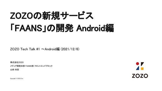 ZOZOの新規サービス 「FAANS」の開発 Android編 株式会社ZOZO メディア開発本部 FAANS部 フロントエンドブロック 山田 尚吾 Copyright