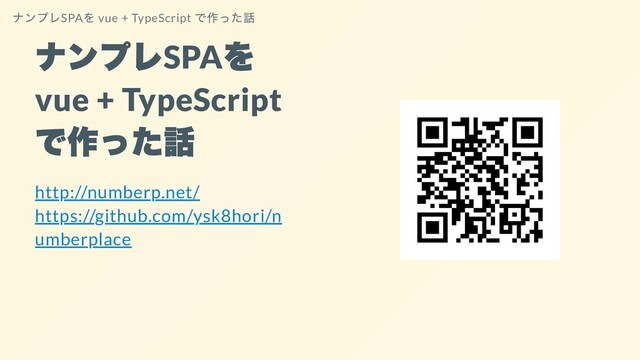 ナンプレ SPA を vue + TypeScript で作った話 http://numberp.net/ https://github.com/ysk8hori/n umberplace