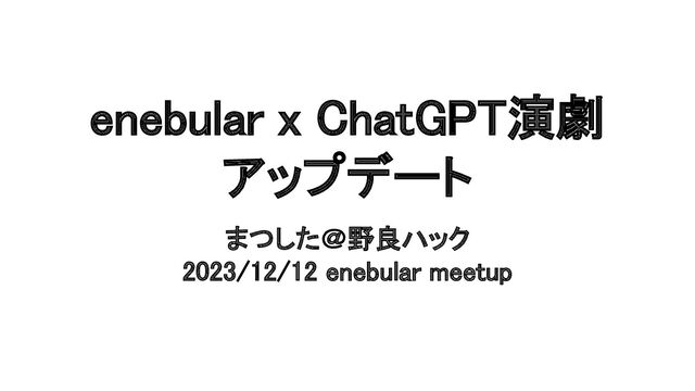 enebular x ChatGPT演劇 アップデート まつした@野良ハック 2023/12/12 enebular meetup