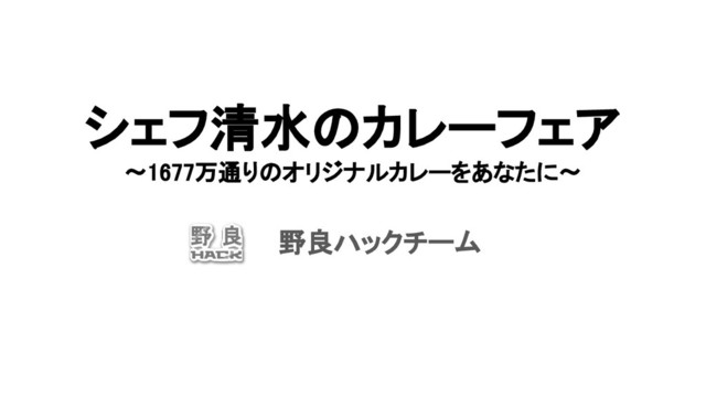 野良ハックチームの養老乃瀧ハッカソンのプレゼン資料です。