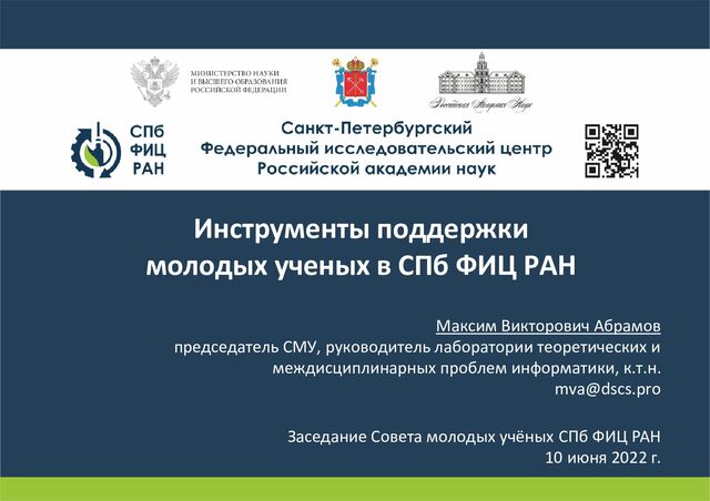 [email protected]. • Конкурс проводится в 2 этапа: 1) заочный — формальная оценка показтелей; 2) устное представление на заседании СМУ. • Принимается не менее 2 статей и не более 4, объединенных общей тематикой и изданных в течении одного года. • Для направления Информационные технологии: • как минимум 1 публикация с одним автором; • как минимум 1 публикация проиндексирована в Scopus или WoS; • Для остальных направлений как минимум 1 публикация в изданиях, индексируемых РИНЦ, входящих в ядро RSCI по соответствующему направлению. • Регламент конкурса, правила подачи заявки и критерии оценки можно найти в Положении о конкурсе (раздел «Документы», ссылка: ys.spcras.ru/docs).