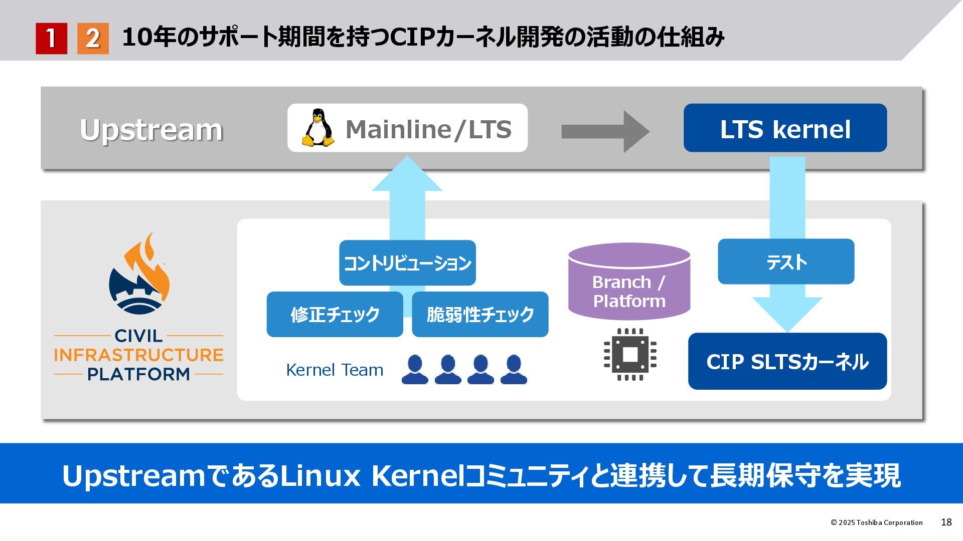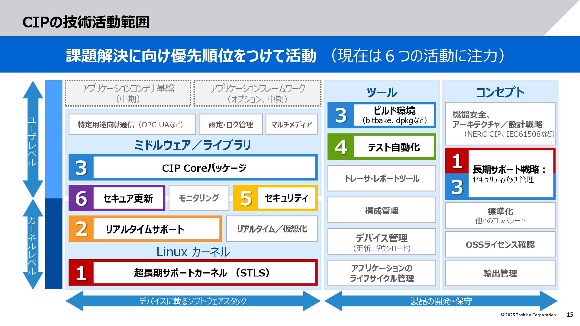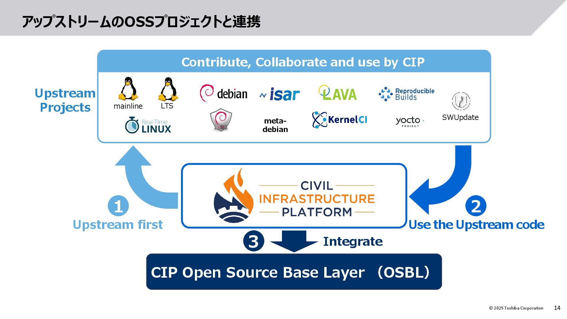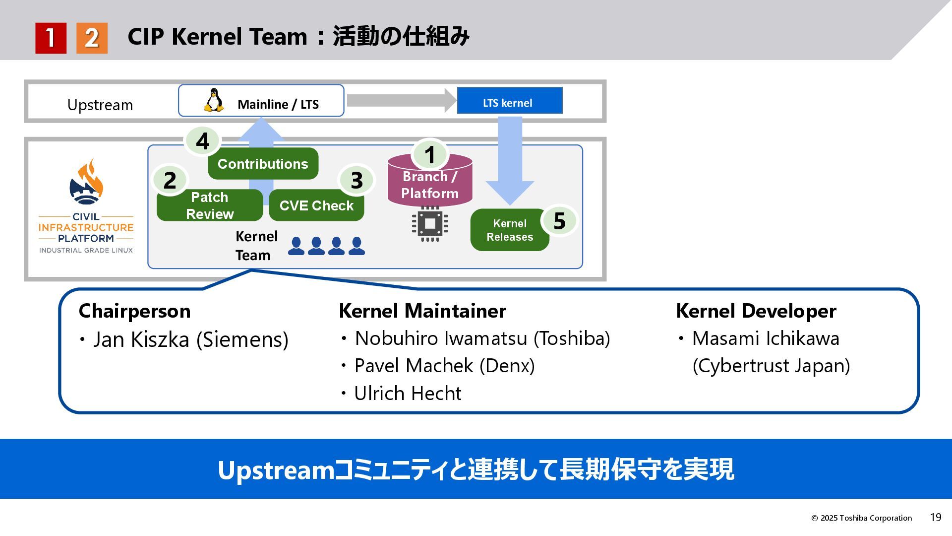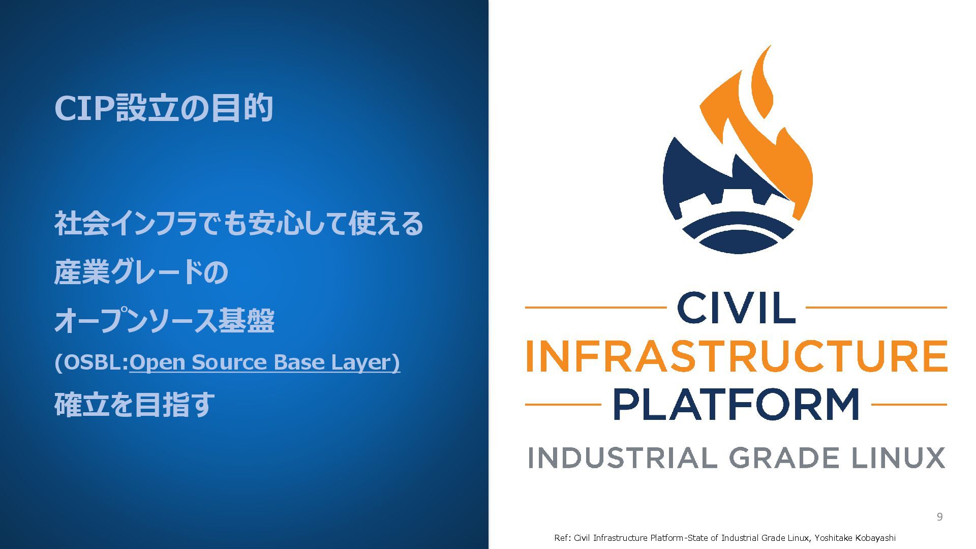 • なぜLinuxなのか? • TCP/IPベースの産業向け通信プロトコルが利用可能 • CPUサポートが豊富 • 商用利用可能なディストリビューション • PC上の仮想環境での実行が可能 Main Control Application Communication Control Application User Land ( e.g. Debian) OPC-UA Modbus TCP Profibus DP Device Net Linux Kernel IEC 61850 Foundation Fieldbus Ref: Power Plants run on Linux CIP, CIP mini-Summit 2019