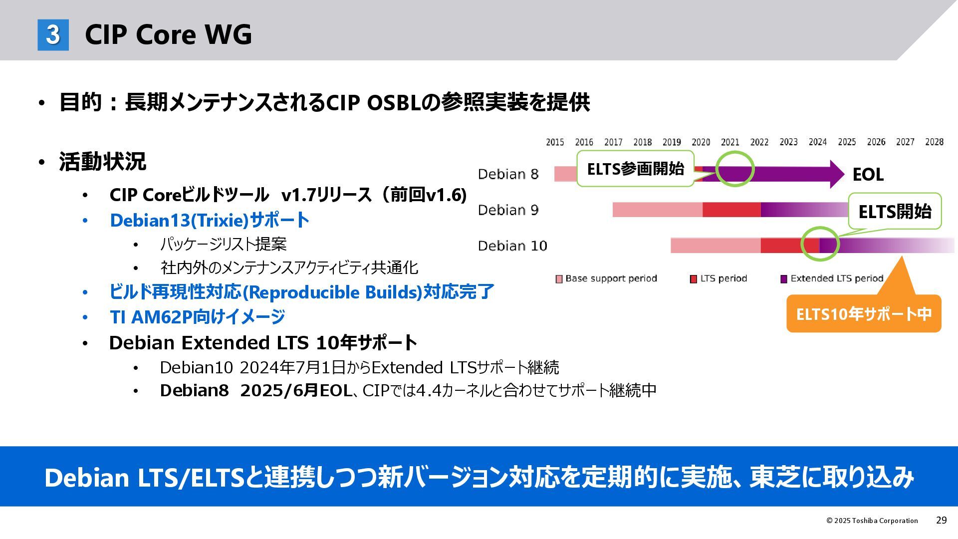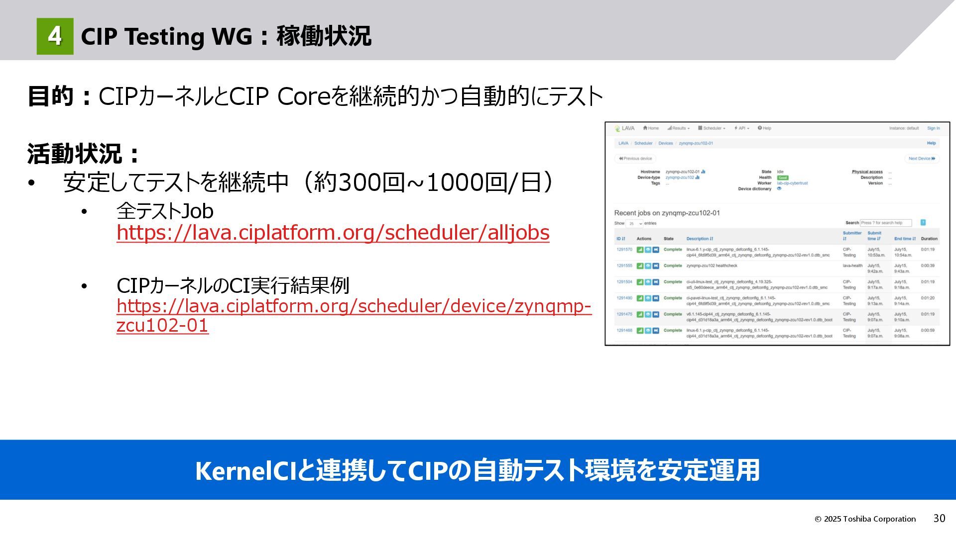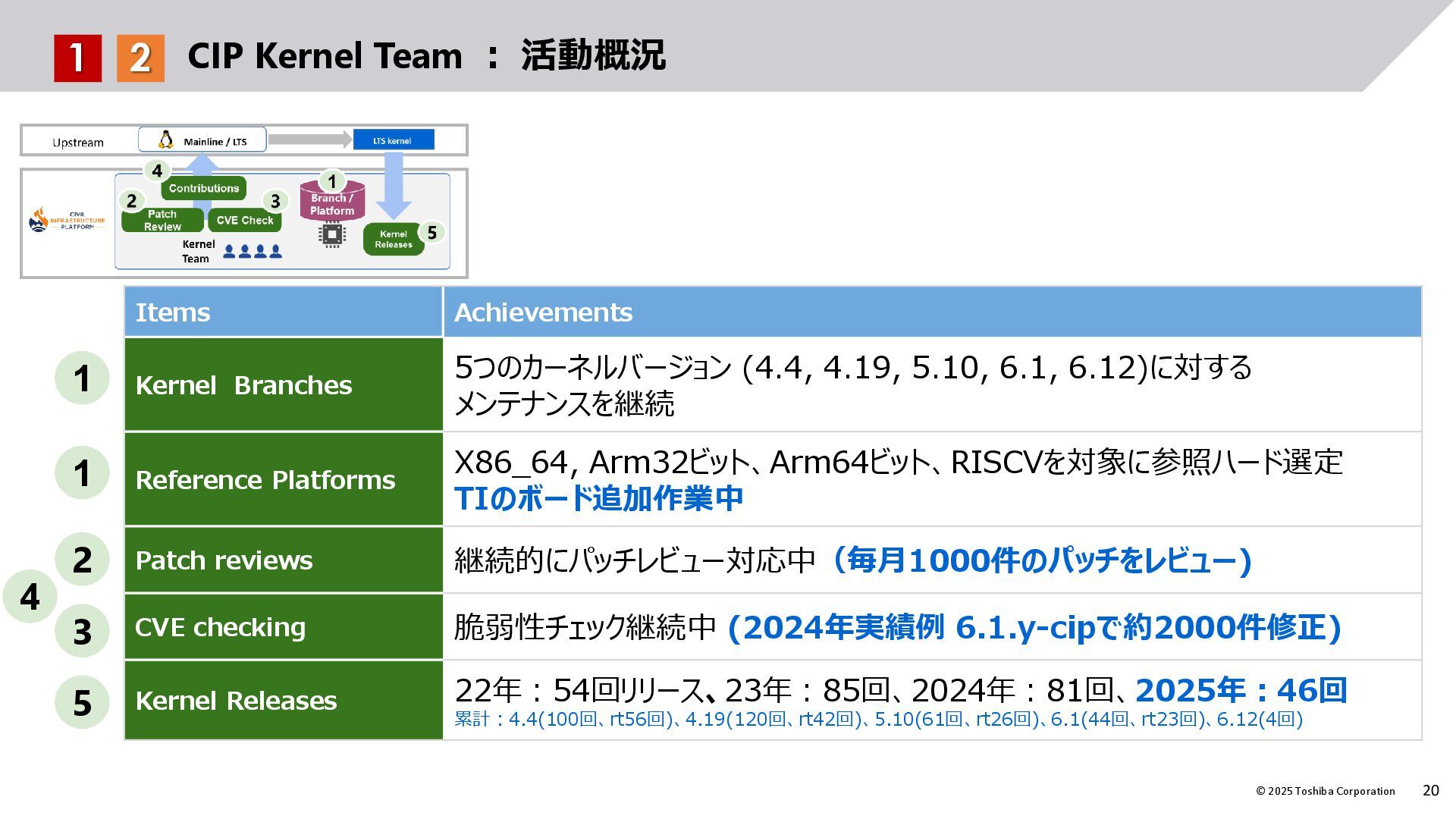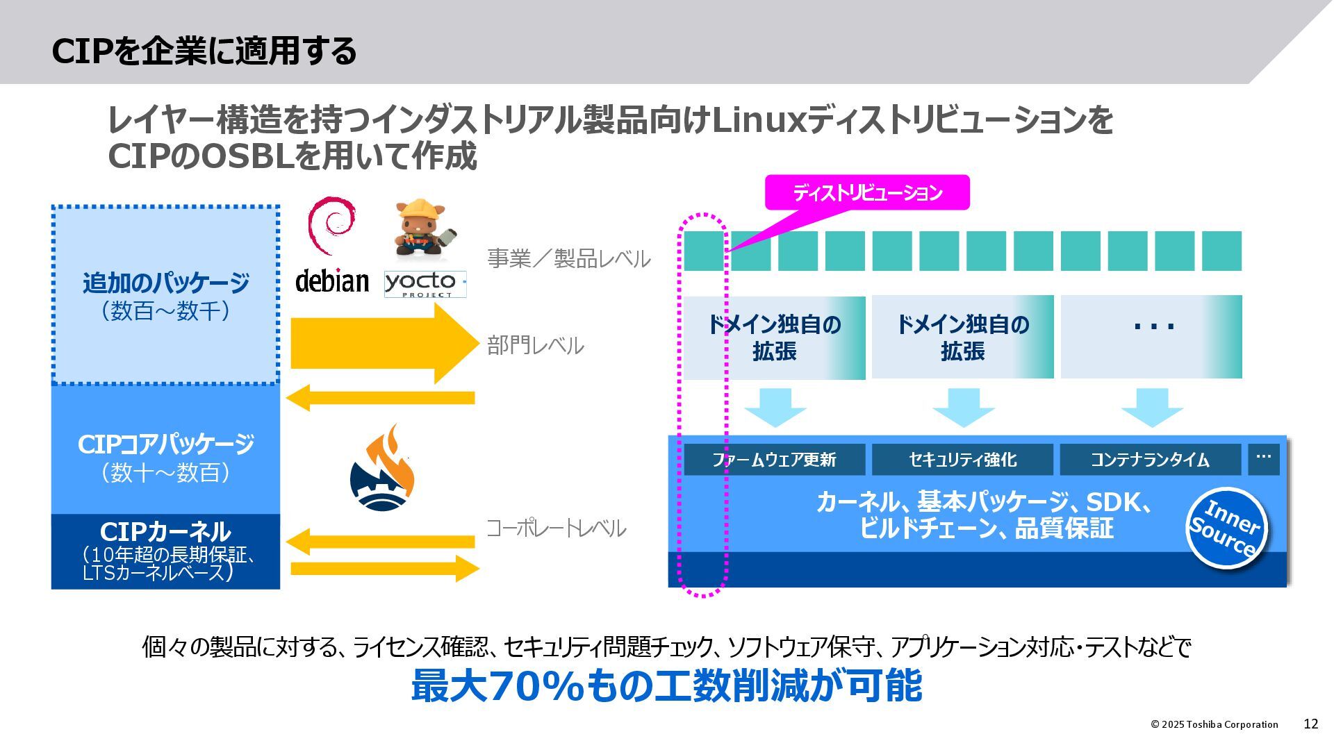 • なぜLinuxなのか? • TCP/IPベースの産業向け通信プロトコルが利用可能 • CPUサポートが豊富 • 商用利用可能なディストリビューション • PC上の仮想環境での実行が可能 Main Control Application Communication Control Application User Land ( e.g. Debian) OPC-UA Modbus TCP Profibus DP Device Net Linux Kernel IEC 61850 Foundation Fieldbus Ref: Power Plants run on Linux CIP, CIP mini-Summit 2019