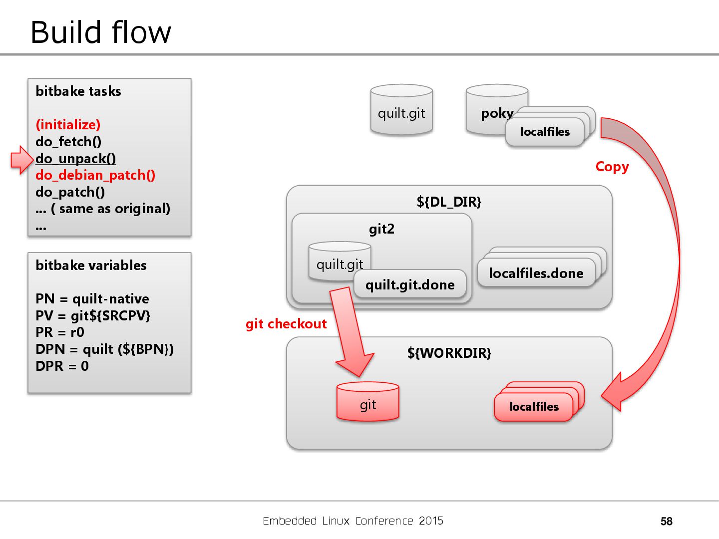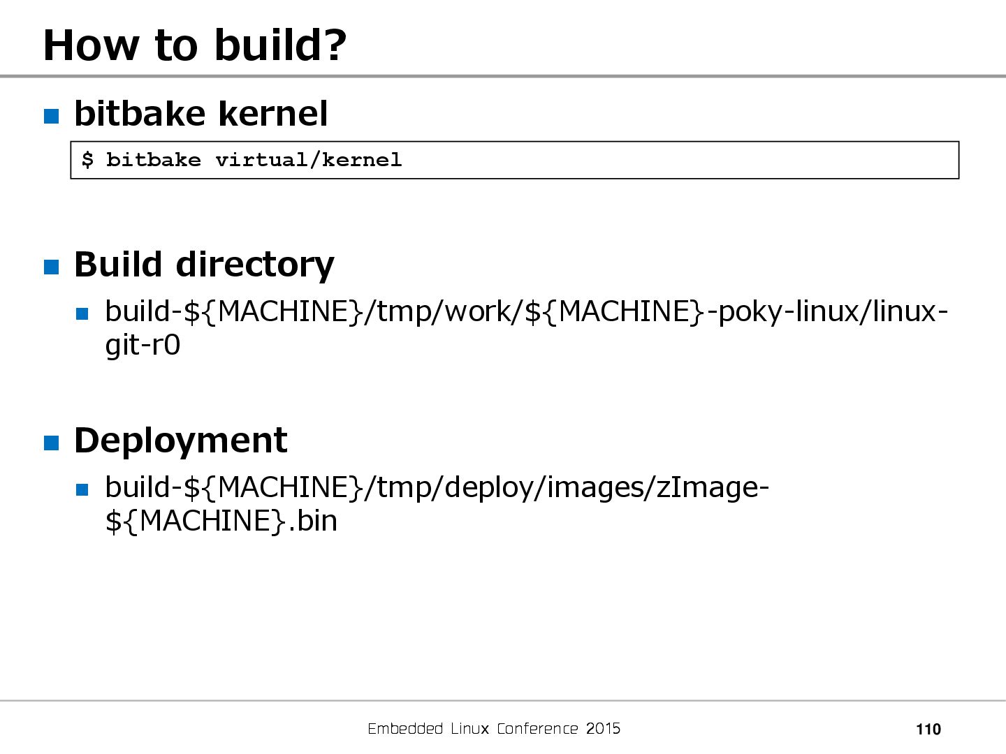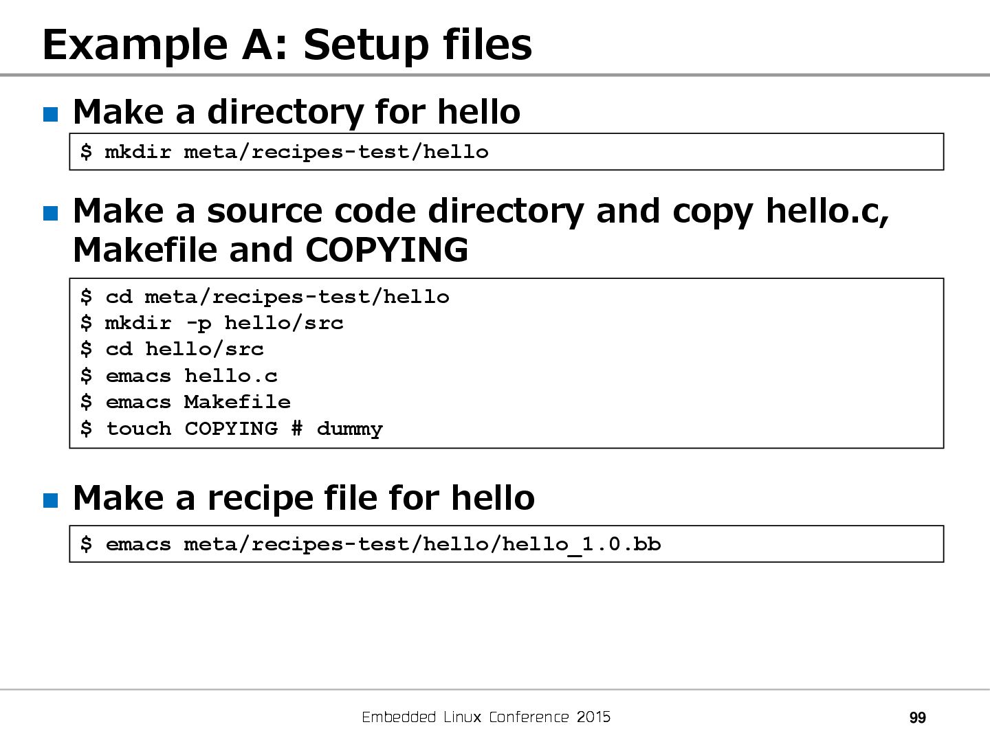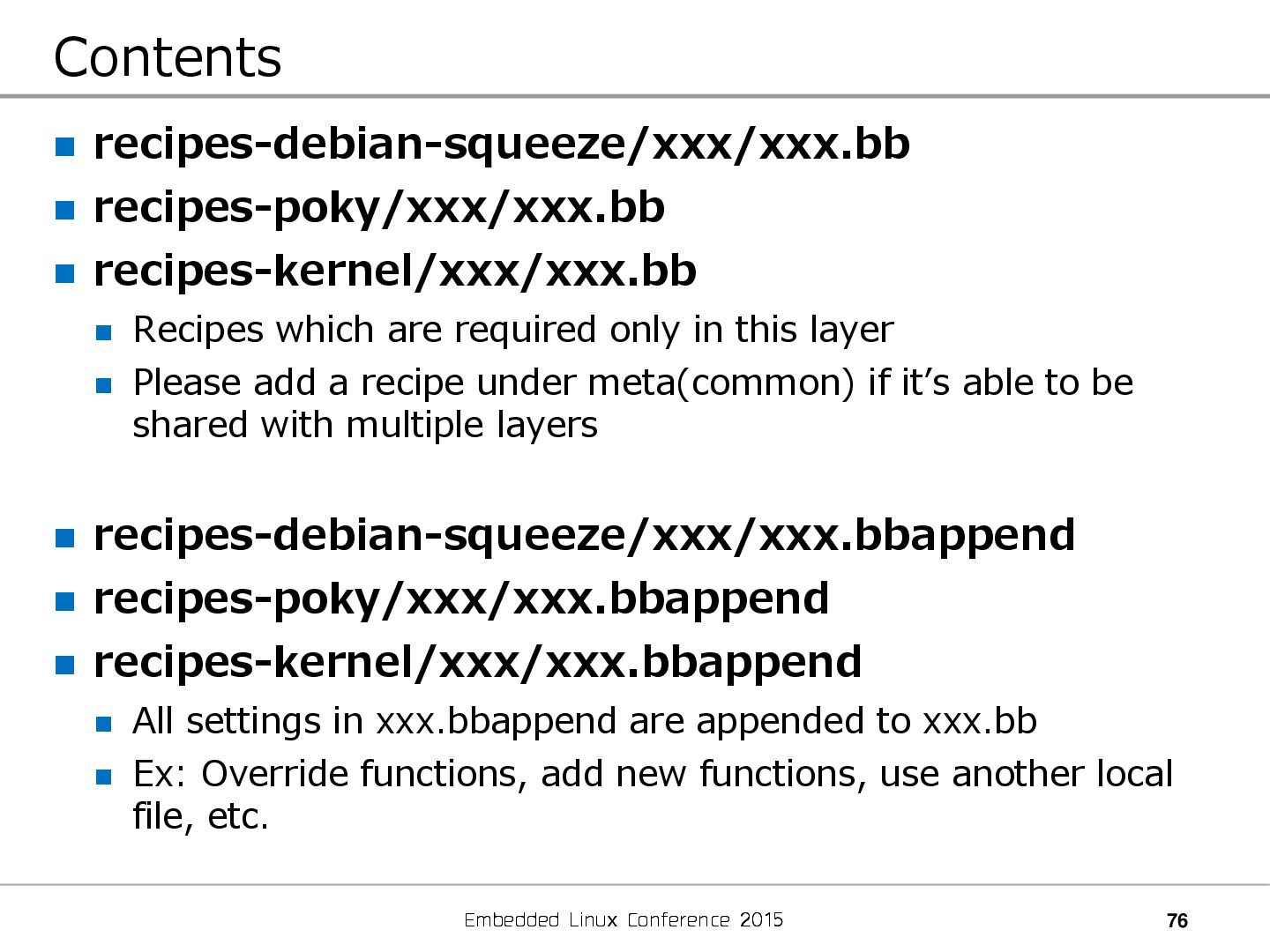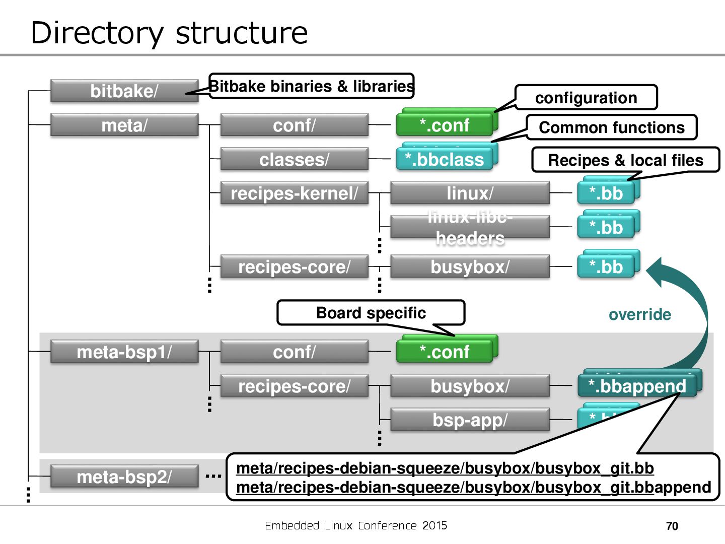 Inherit autotools class autotools class adds: do_configure, do_make, do_install, etc. for autotools-based sources Default functions are already defined in "base.bbclass", but some functions (do_configure, do_install, etc.) are empty Don't inherit autotools if the source code is not based on autotools Please implement do_configure, do_compile, do_install, etc. from scratch inherit autotools