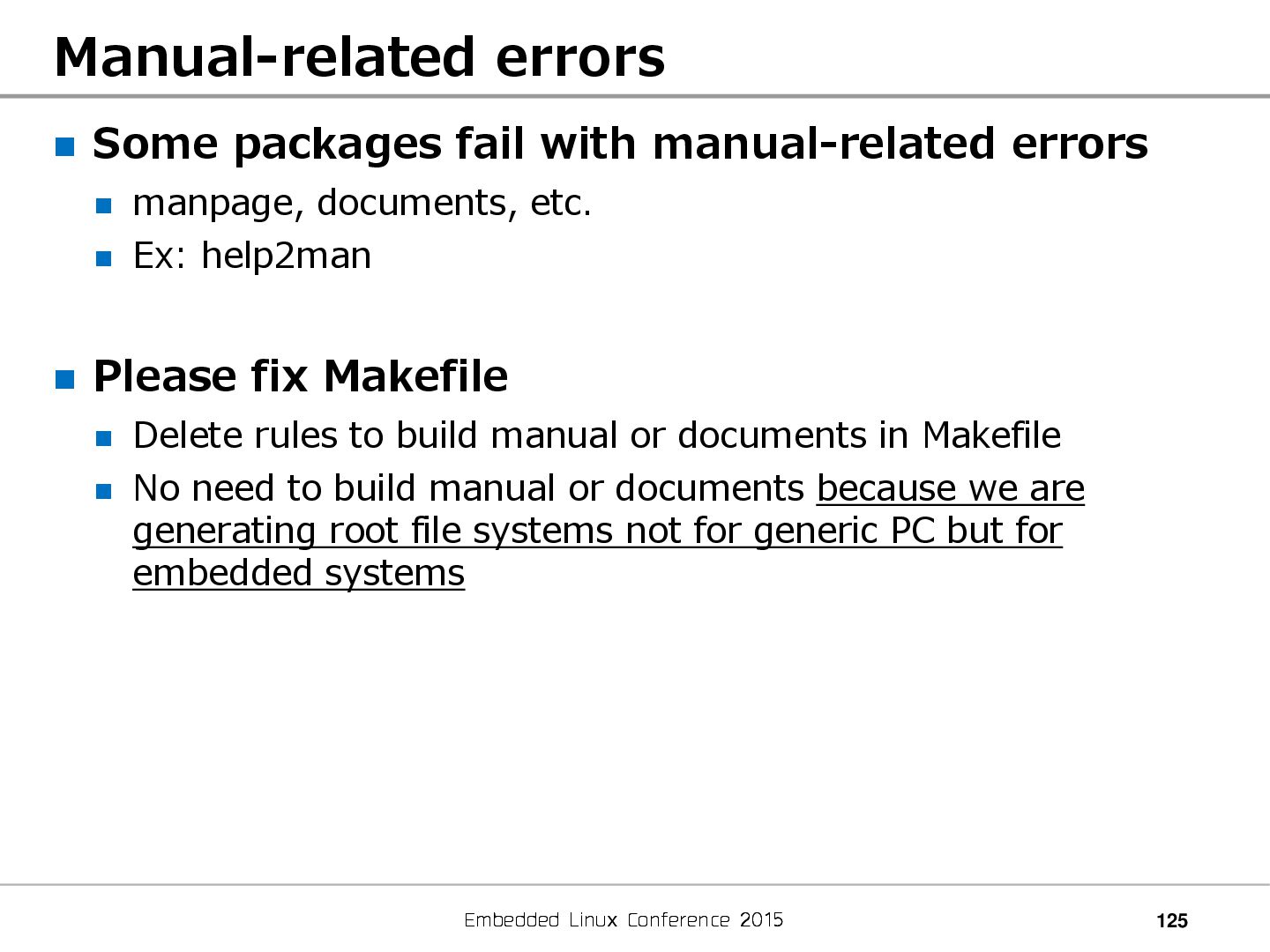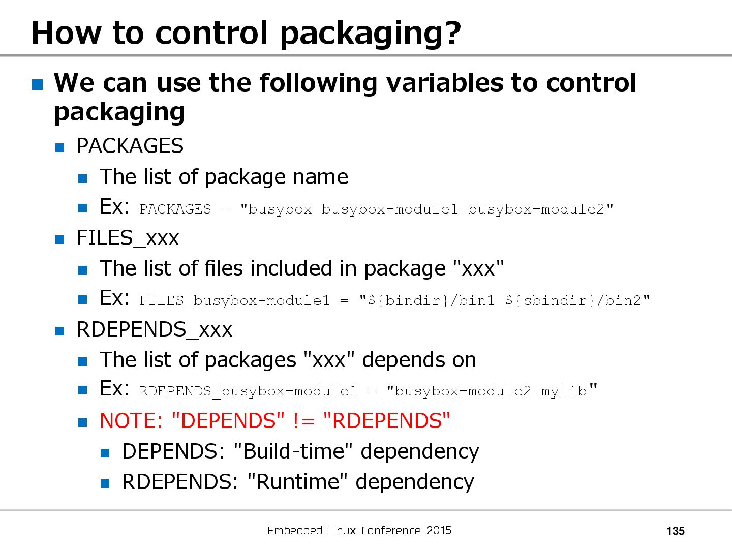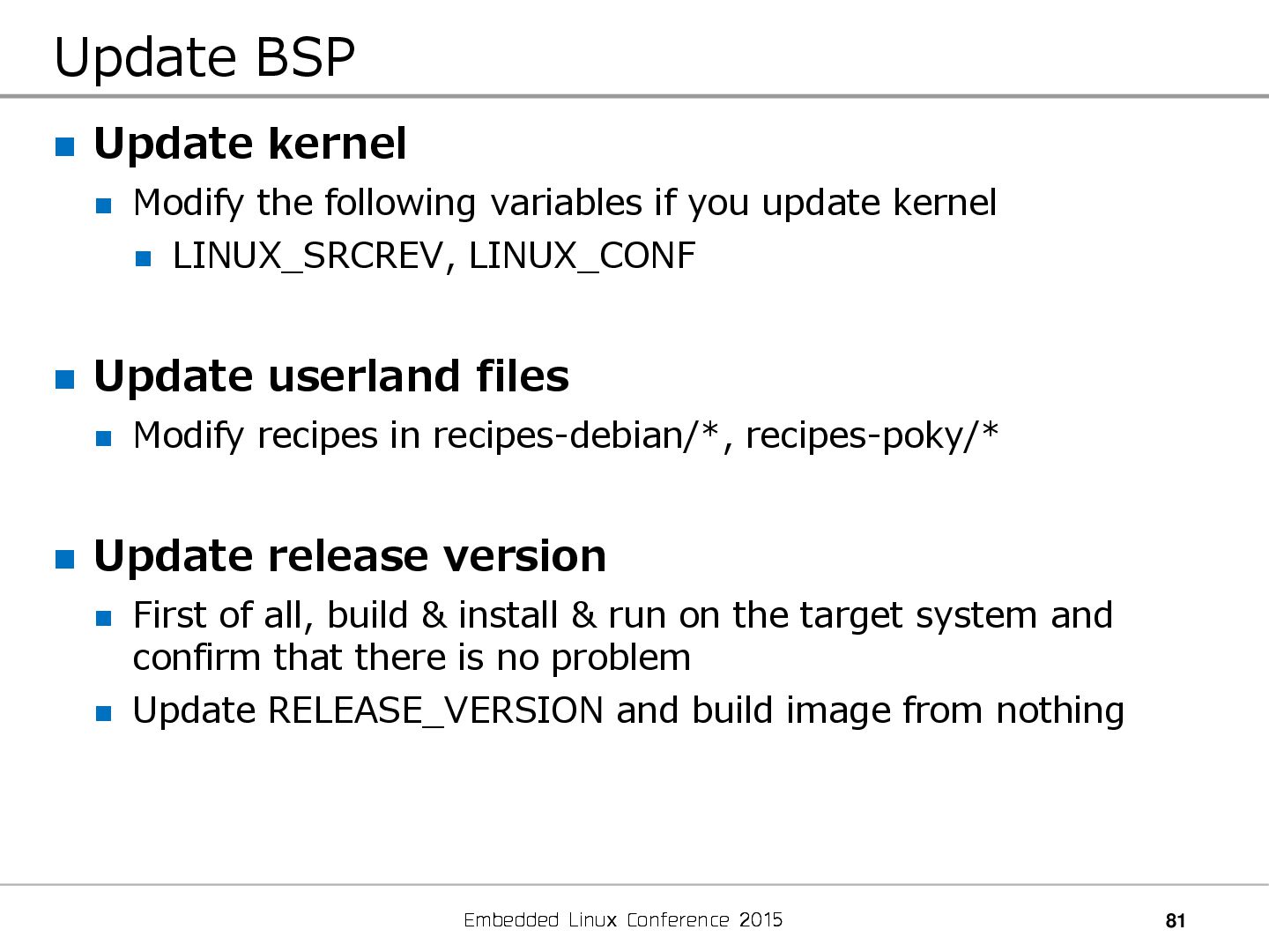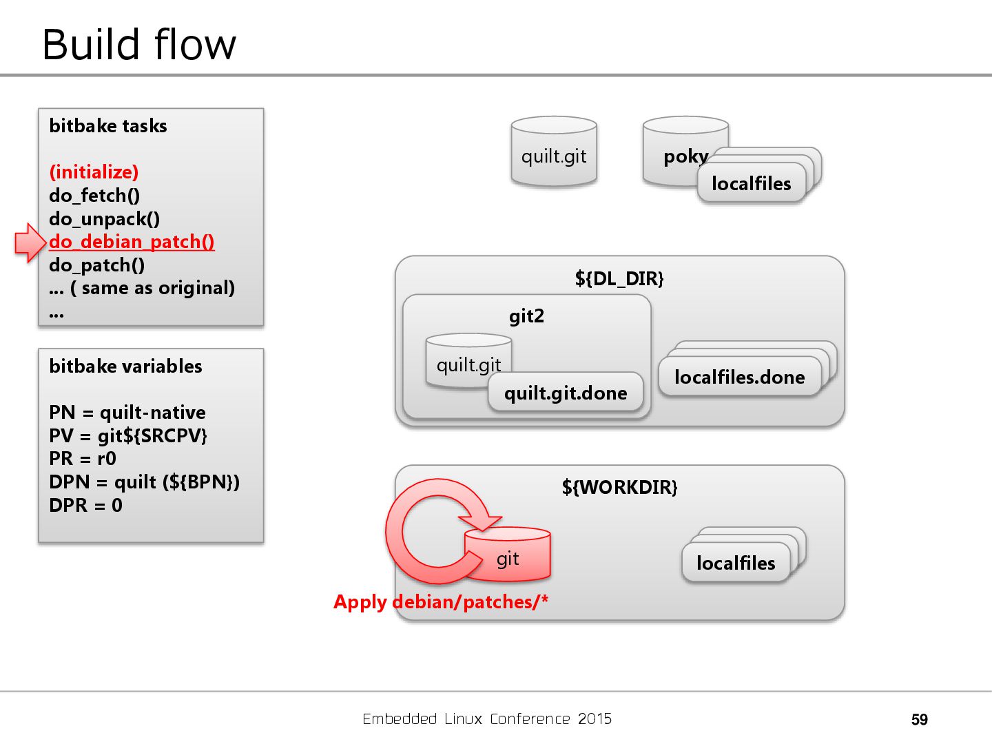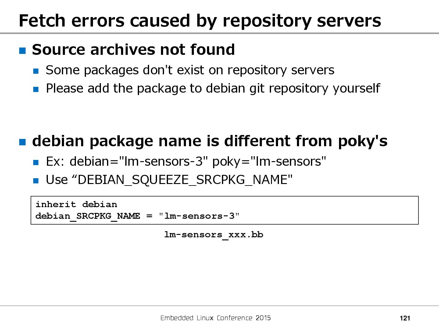 Inherit autotools class autotools class adds: do_configure, do_make, do_install, etc. for autotools-based sources Default functions are already defined in "base.bbclass", but some functions (do_configure, do_install, etc.) are empty Don't inherit autotools if the source code is not based on autotools Please implement do_configure, do_compile, do_install, etc. from scratch inherit autotools