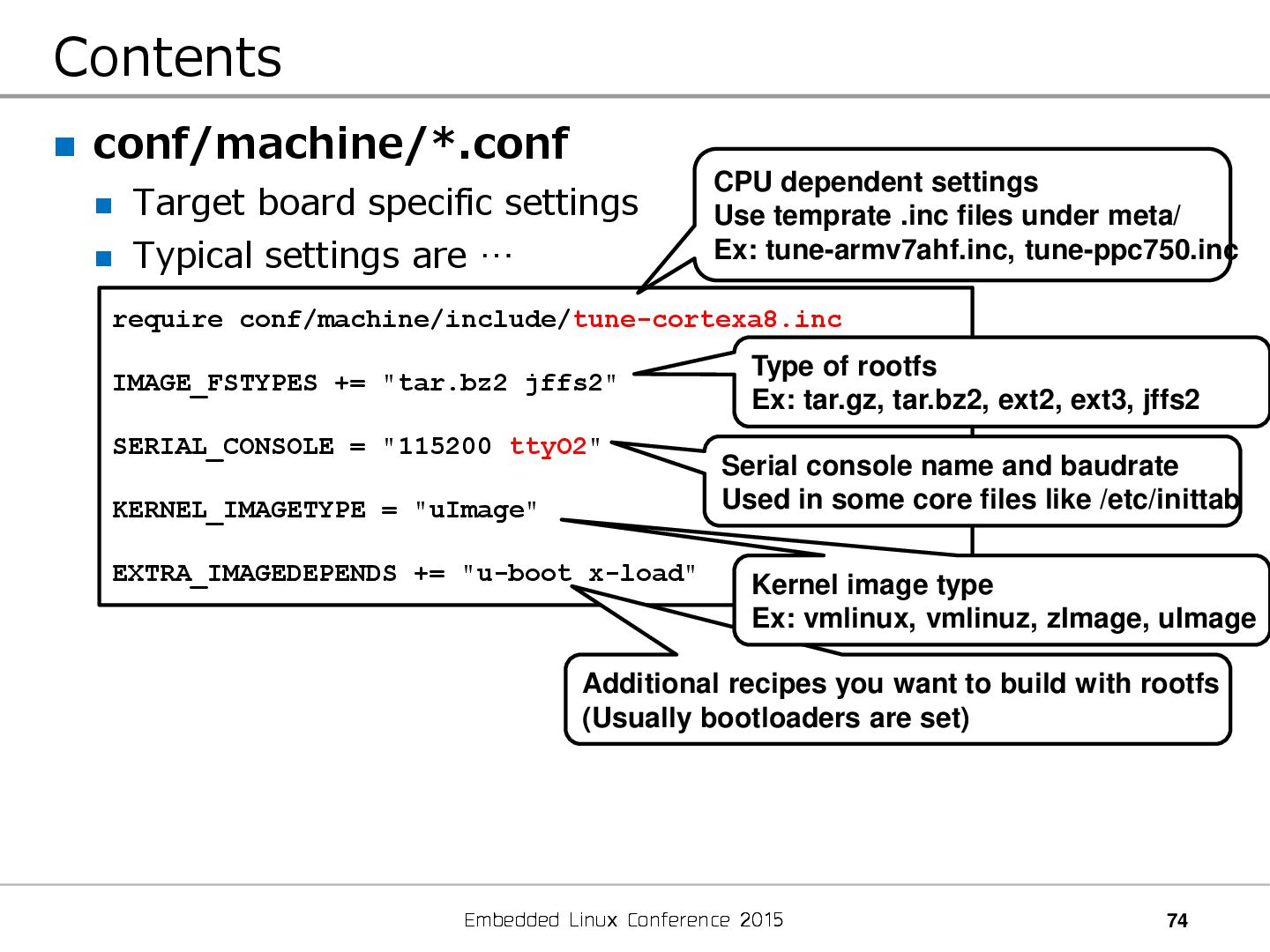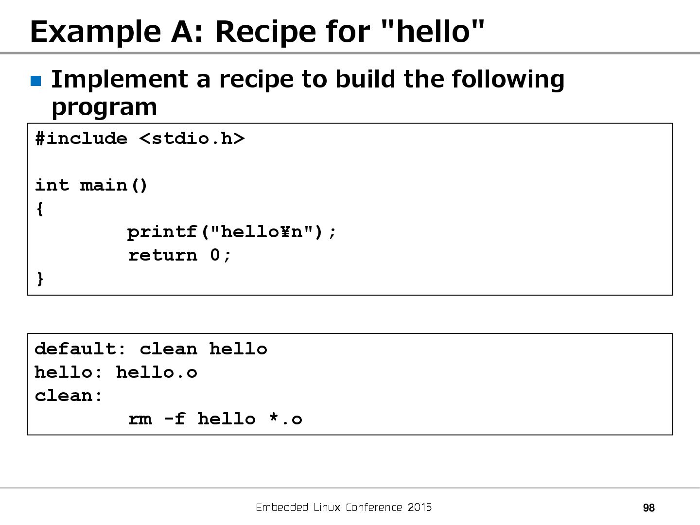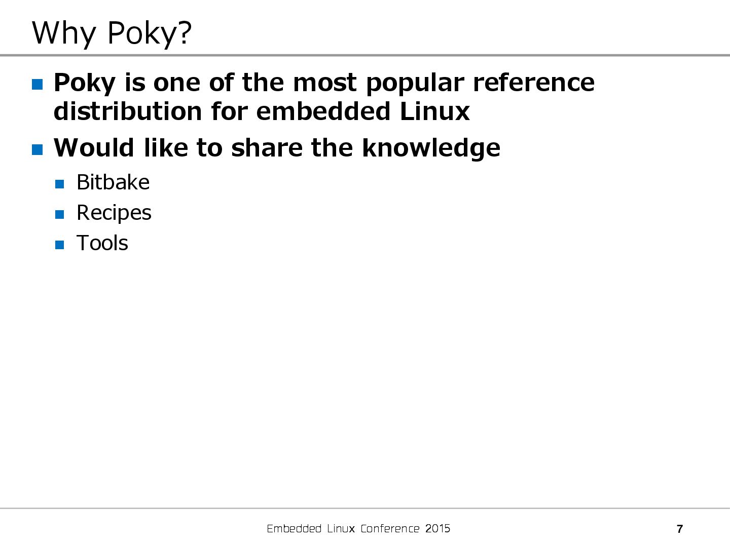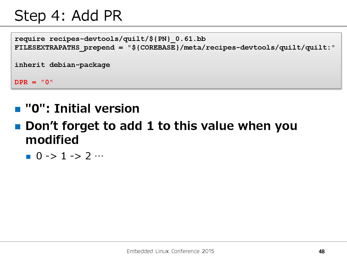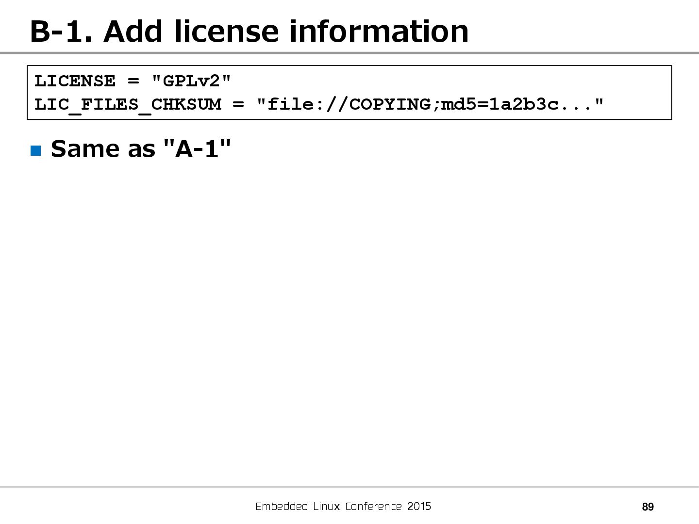 Inherit autotools class autotools class adds: do_configure, do_make, do_install, etc. for autotools-based sources Default functions are already defined in "base.bbclass", but some functions (do_configure, do_install, etc.) are empty Don't inherit autotools if the source code is not based on autotools Please implement do_configure, do_compile, do_install, etc. from scratch inherit autotools