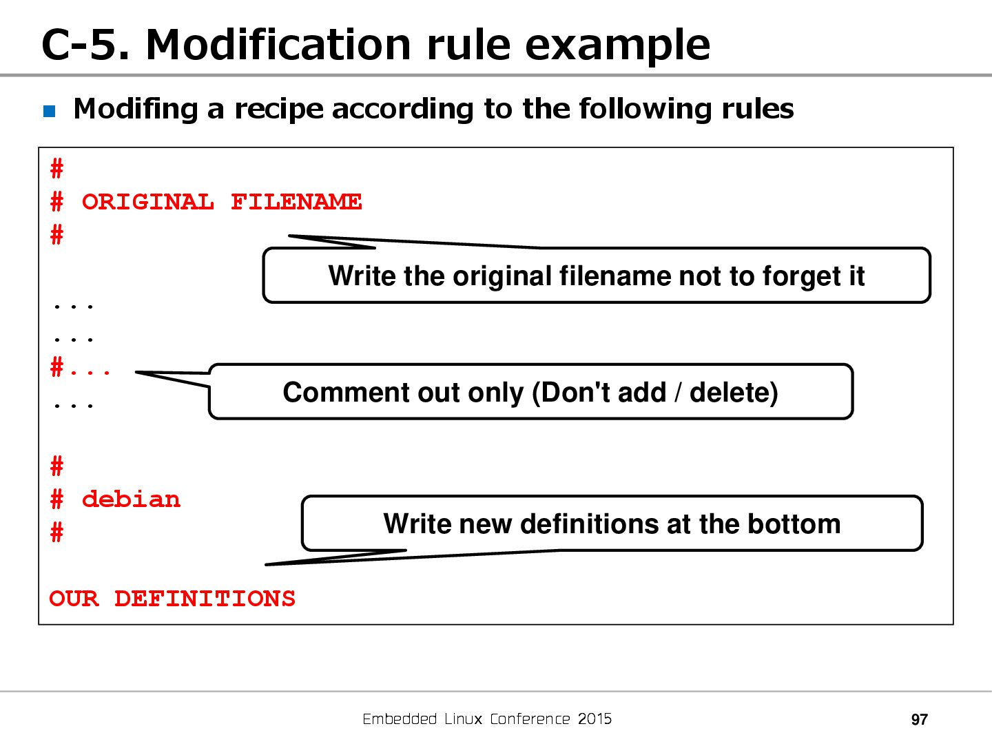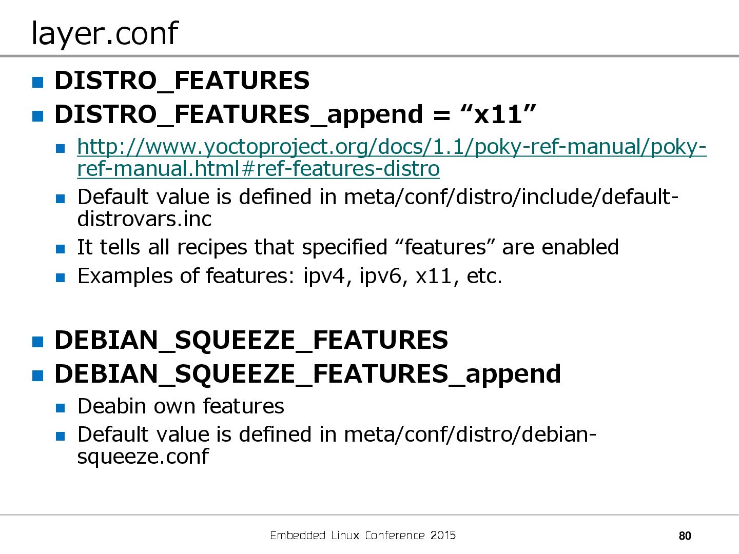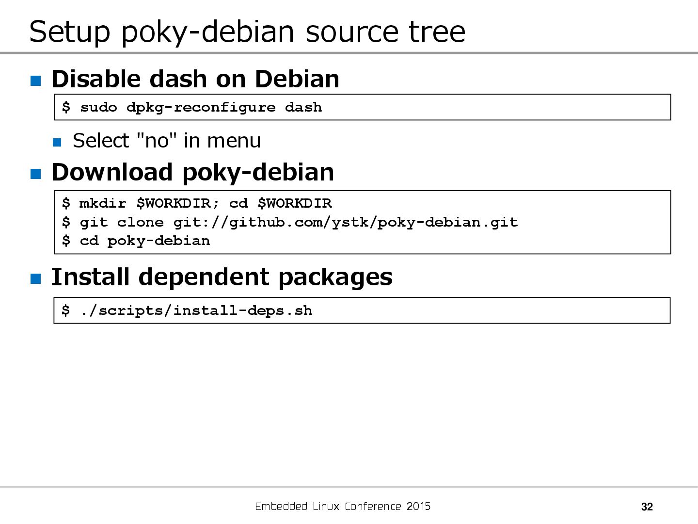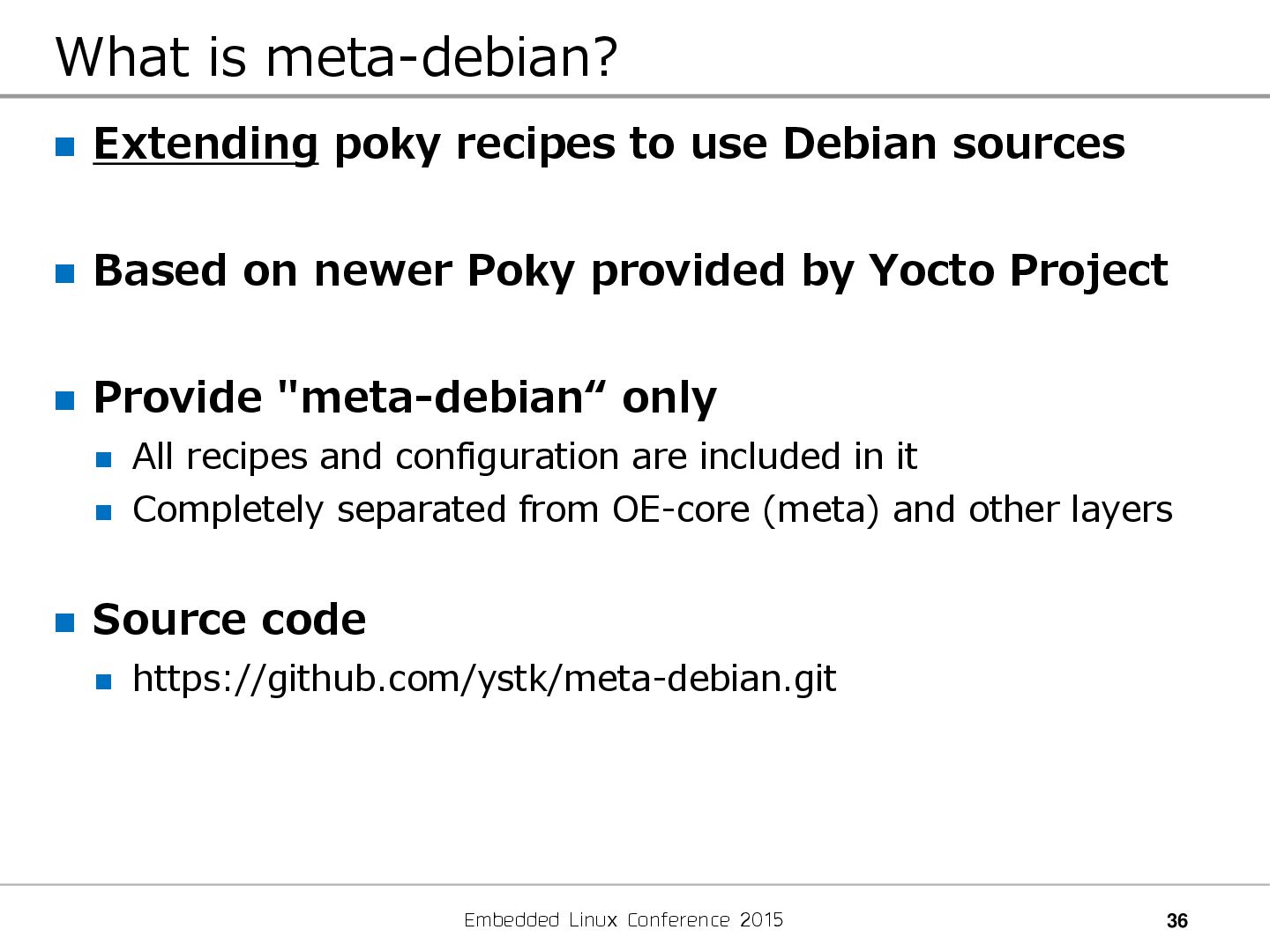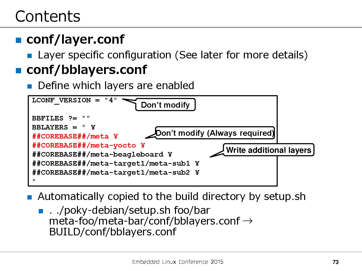 Inherit autotools class autotools class adds: do_configure, do_make, do_install, etc. for autotools-based sources Default functions are already defined in "base.bbclass", but some functions (do_configure, do_install, etc.) are empty Don't inherit autotools if the source code is not based on autotools Please implement do_configure, do_compile, do_install, etc. from scratch inherit autotools