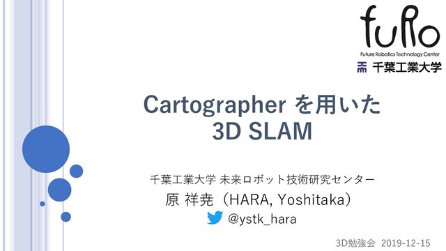全18回, 2016~2017. “SLAM とは何か:自己位置推定と地図構築の全体像”, RSJ セミナー, 2018. “ロボティクスにおける SLAM 手法と実用化例”, SSII OS, 2019. https://www.slideshare.net/hara-y/slam-ssii-os-2019 “SLAM の基礎とオープンソース”, RSJ セミナー, 2019. https://www.slideshare.net/hara-y/slam-rsj-seminar-2019 各種 SLAM Cartographer 3次元地図出力 パラメータ調整