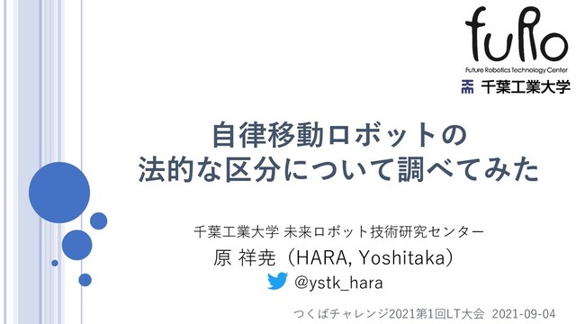 自律移動ロボットの法的な区分について調べてみた 有識者委員会(つくば市も参加)で新たな区分が検討されている つくチャレは、研究段階のロボットで試行錯誤しながら実験できる場 つくばチャレンジ 電動車椅子 (搭乗時自律走行) 歩道通行車 (新区分) 小型低速車 (新区分) サイズ、重量 全長:1.2 m 以下 全幅:0.75 m 以下 全高:0.6 m~1.8 m 重量:100 kg 以下 (60 kg 以下推奨) 全長:1.2 m 以下 全幅:0.70 m 以下 全高:1.2 m 以下 電動車椅子相当 (配送ロボットなど) 全長:1.2 m 以下 全幅:0.7 m 以下 自転車相当 (電動キックボードなど) 全長:1.9 m 以下 全幅:0.6 m 以下 走行速度 6 km/h 以下 6 km/h 以下 6 km/h 以下 15 km/h 以下 走行場所 歩道など 歩道など 歩道など 車道や自転車レーンなど 備考 搭乗型は対象外 無人での自律走行は 対象外 有識者委員会にて 検討中 有識者委員会にて 検討中