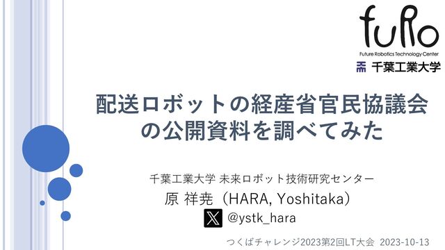 配送ロボットの経産省官民協議会 の公開資料を調べてみた 千葉工業大学 未来ロボット技術研究センター 原 祥尭(HARA, Yoshitaka) つくばチャレンジ 第 回