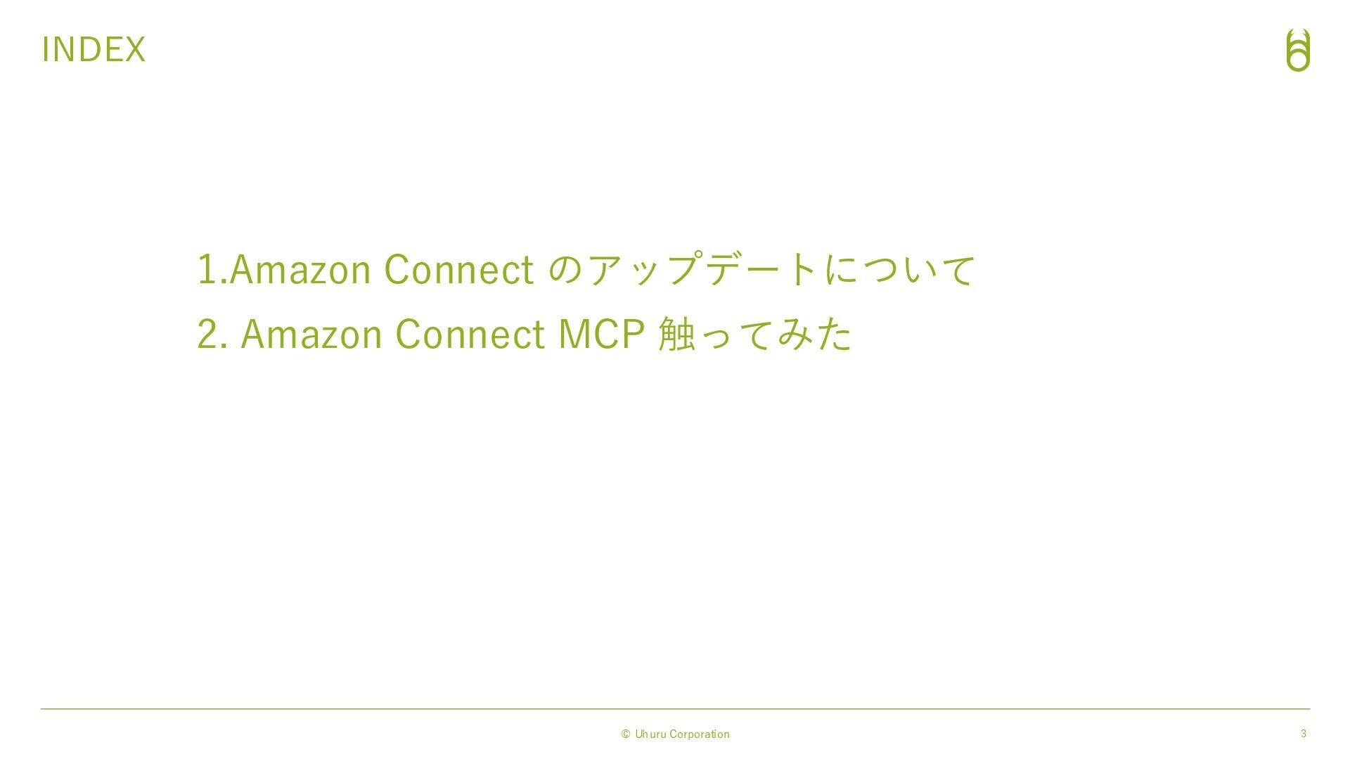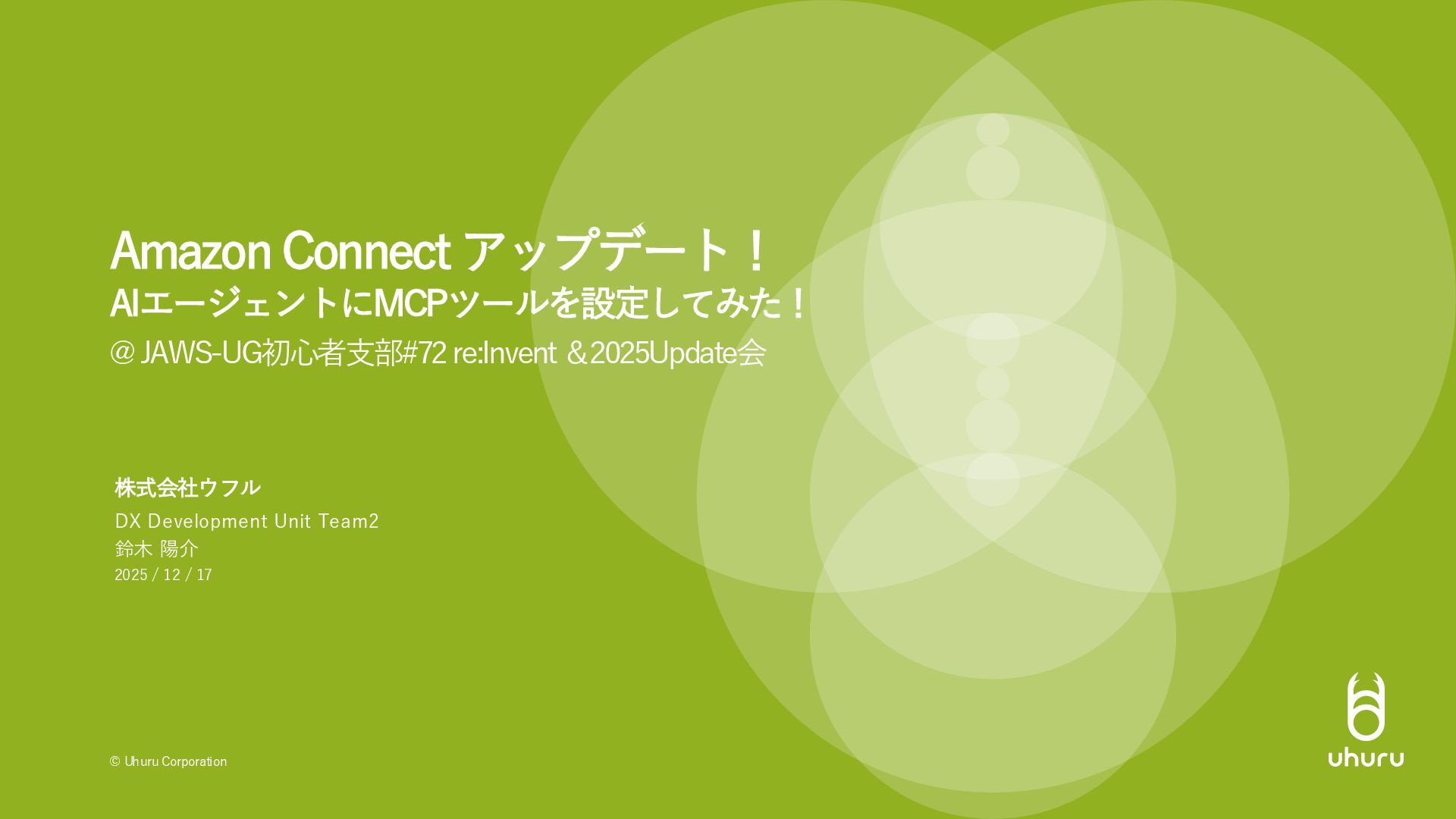 1. © Uhuru Corporation 株式会社ウフル @ JAWS-UG初心者支部#72 re:Invent&2025Update会 Amazon Connect アップデート!